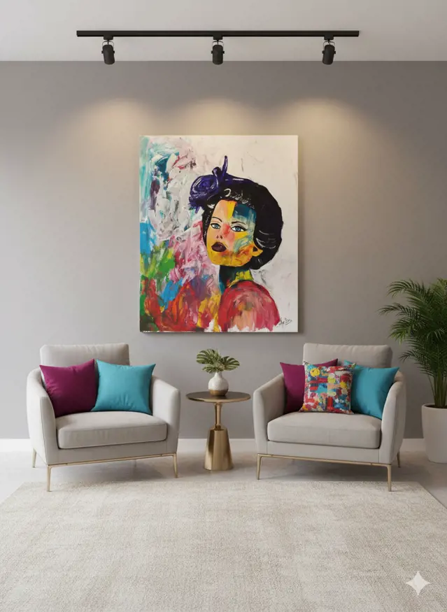 Féminité colorée : un tableau contemporain vibrant et expressif