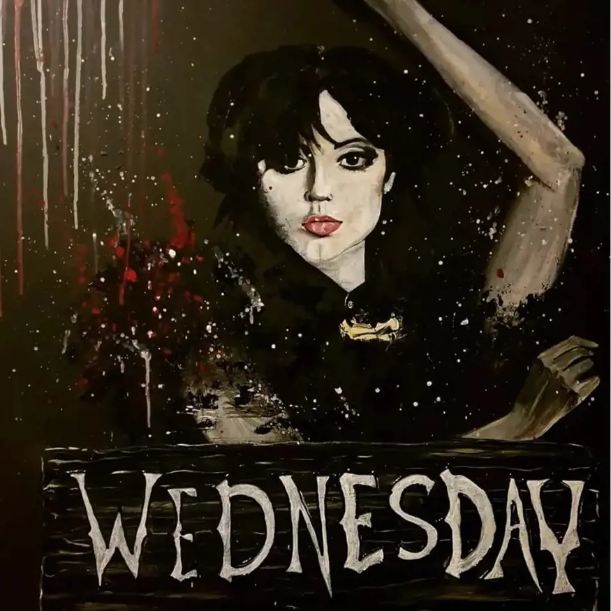 Wednesday est une œuvre contemporaine puissante et intrigante, inspirée par l’univers mystérieux et gothique du personnage éponyme. Cette peinture acrylique sur toile explore la dualité entre ombre et lumière, force et vulnérabilité.